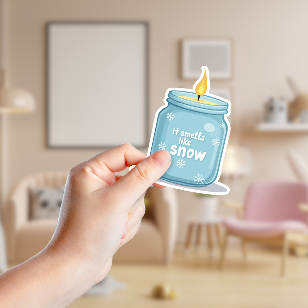 This playful 2.5x2.5" vinyl sticker captures the cozy charm of a light blue candle adorned with delicate snowflakes and the whimsical caption "it smells like snow," inspired by the beloved Gilmore Girls quote. Perfect for adding a touch of winter magic to laptops, water bottles, or notebooks, it’s a charming way for fans to celebrate their favorite show and bring a bit of frosty fun wherever they stick it. Durable and vibrant, this sticker is a delightful gift or retail addition for any Gilmore Girls enthusiast.
